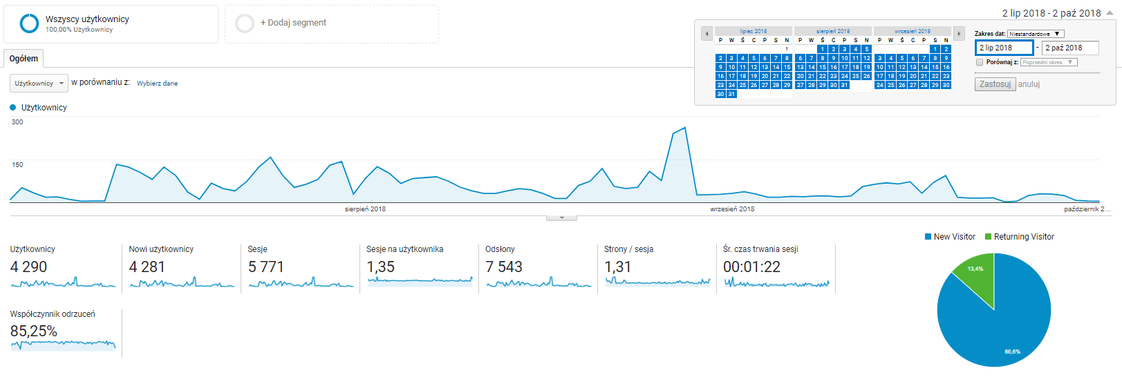 7. Kolejnym krokiem była aktywacja modułu do analizy statystyk bloga – Google Analytics – to darmowe rozwiązanie od Google, które sprawdza min, ruch na stronie bloga, ilość odwiedzin i wiele, wiele innych danych. Kilka z nich przytoczę w dalszej części tego artykułu.