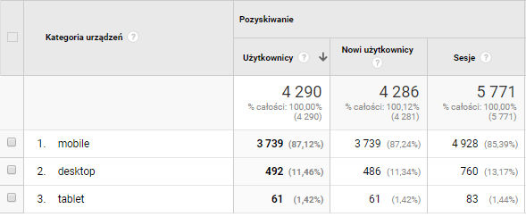 To co mnie trochę zaskoczyło to ilość użytkowników, którzy czytają wpisy na smartfonach. To prawie 90% wszystkich odwiedzających stronę.
