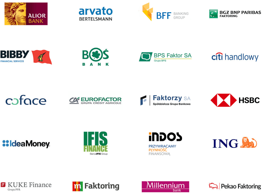 Jest ich aż 21 a wśród nich zarówno banki jaki i wyspecjalizowanych spółki faktoringowe. Poniżej wymieniam wszystkie z nich.