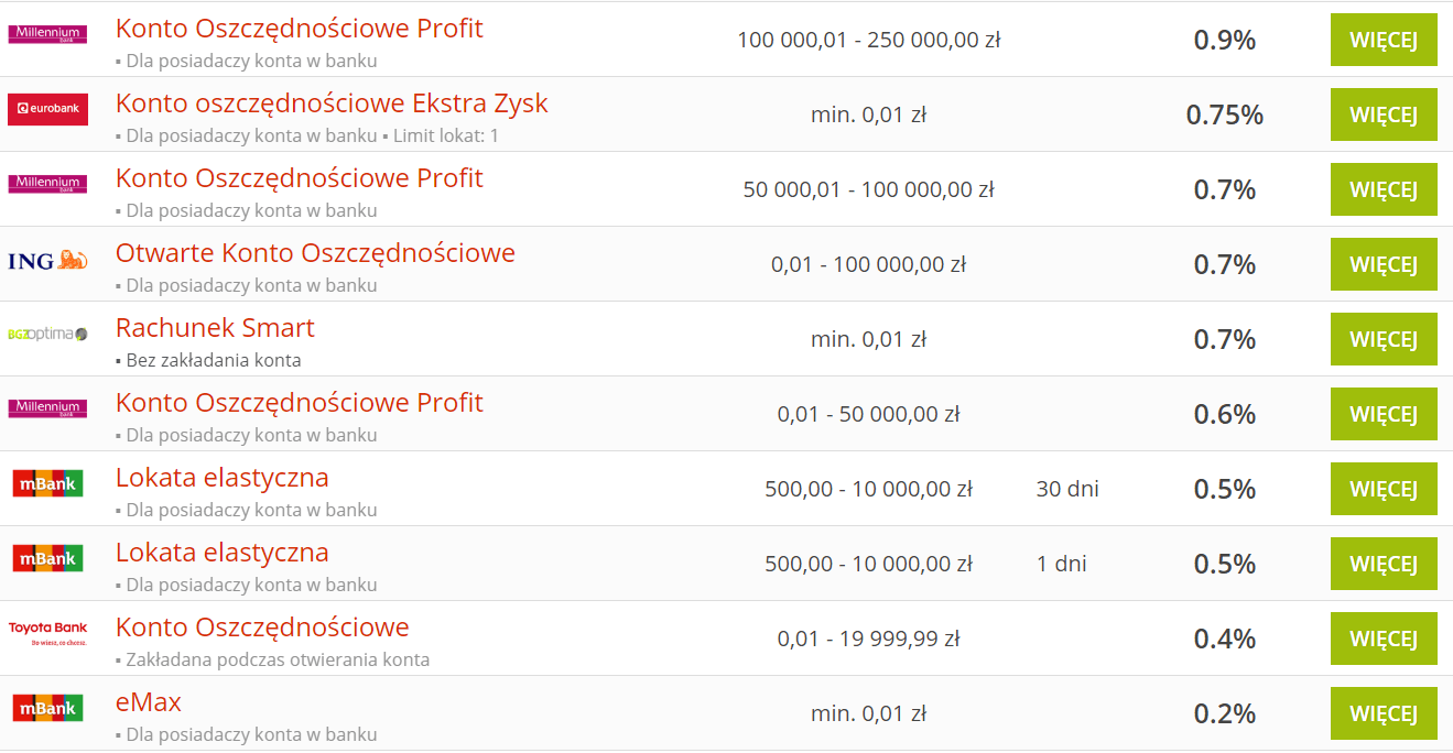 • Lokaty i konta oszczędnościowe